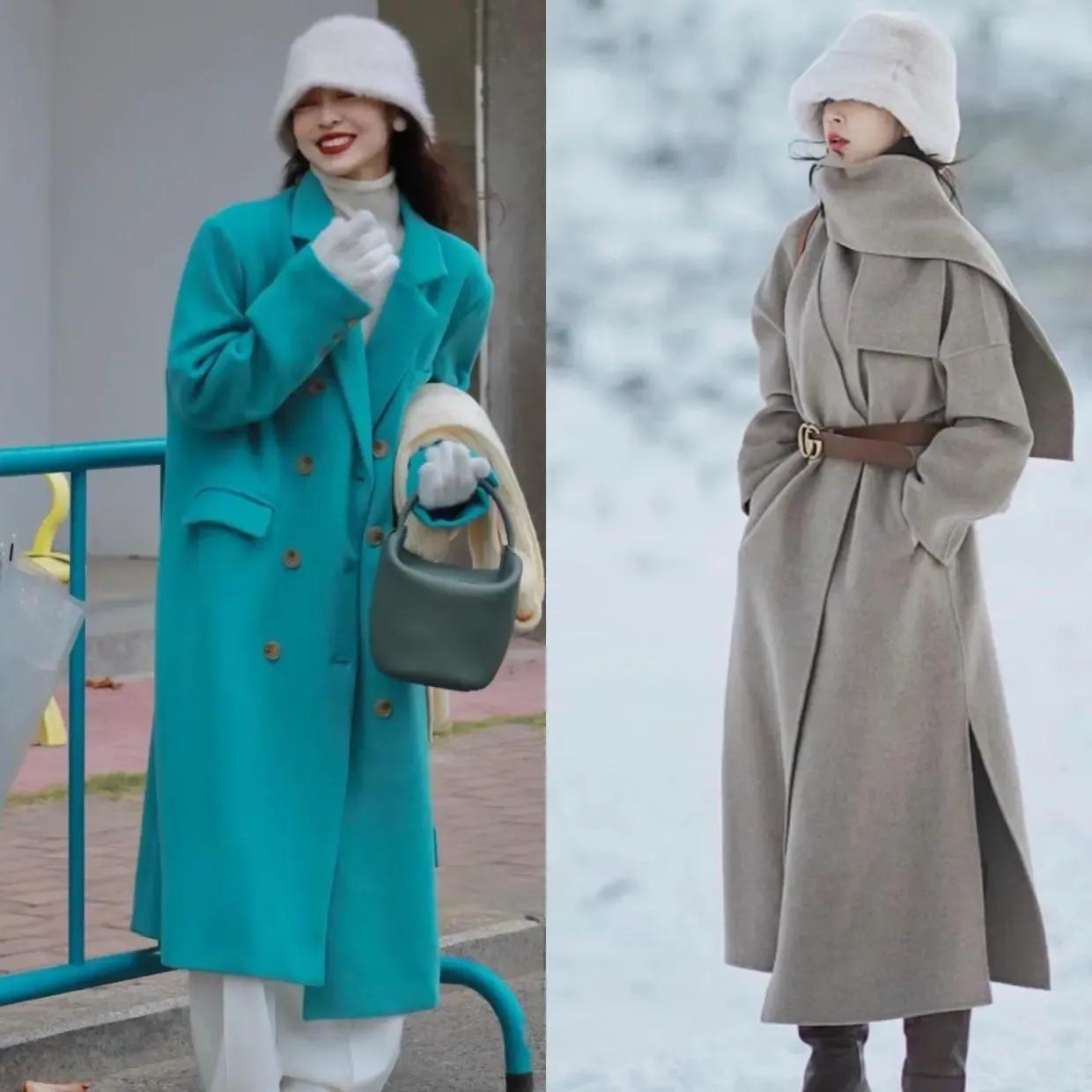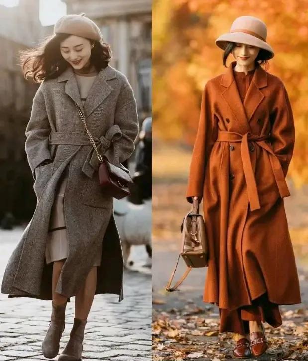 不过选择大衣的时候尽量选择有高腰收腰的设计,或者是自带腰带的版型,我们穿的时候就可以向下面这位博主一样,把腰带打个蝴蝶结勒住,小蛮腰提升腰线,可以说是一举两得。